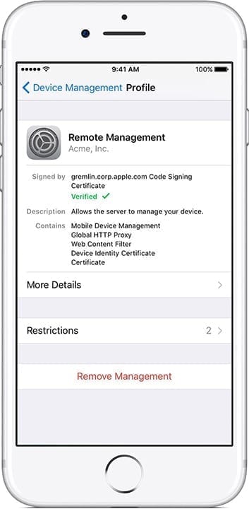 - Now, Remove the profile and restart your Apple device.